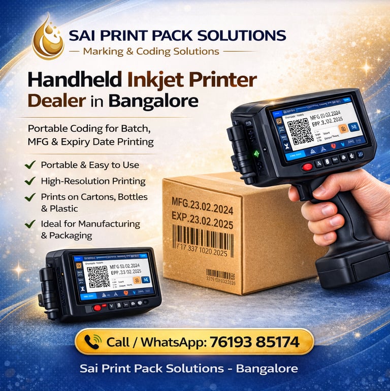 Choosing the right handheld inkjet printer dealer in Bangalore is crucial for ensuring accurate and reliable product marking. Sai Print Pack Solutions offers top-quality printers, expert support, and cost-effective solutions that meet the needs of modern businesses.