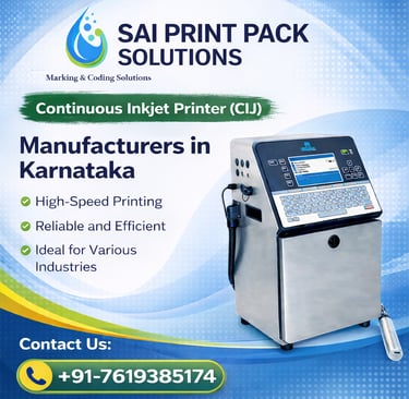 Sai Print Pack Solutions is a trusted Continuous Inkjet Printer (CIJ) manufacturer in Karnataka, delivering advanced marking and coding solutions for modern industries.