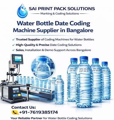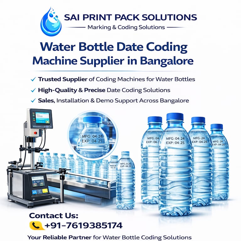 Businesses looking for reliable Water Bottle Date Coding Machines in Bangalore can depend on Sai Print Pack Solutions for quality equipment and trusted service support. Our expertise in industrial batch coding and marking solutions enables manufacturers to implement efficient printing systems for their packaging lines.